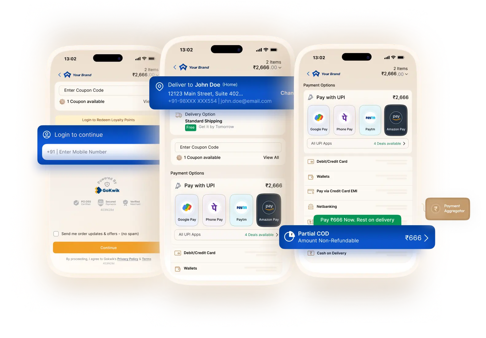Integrate seamlessly with top licensed Payment Aggregator, Payment routing and settlement are performed by licensed Payment Aggregators integrated with the GoKwik platform. GoKwik is not a Payment Aggregator